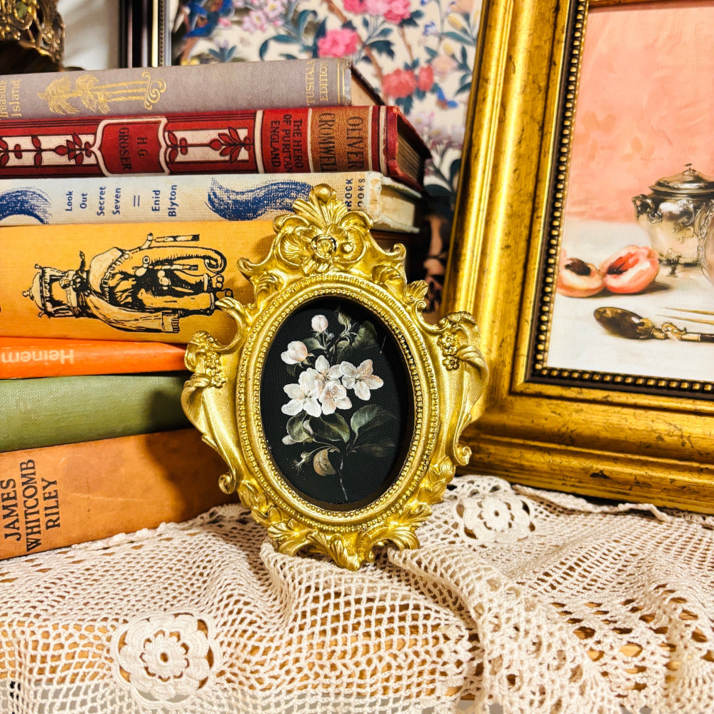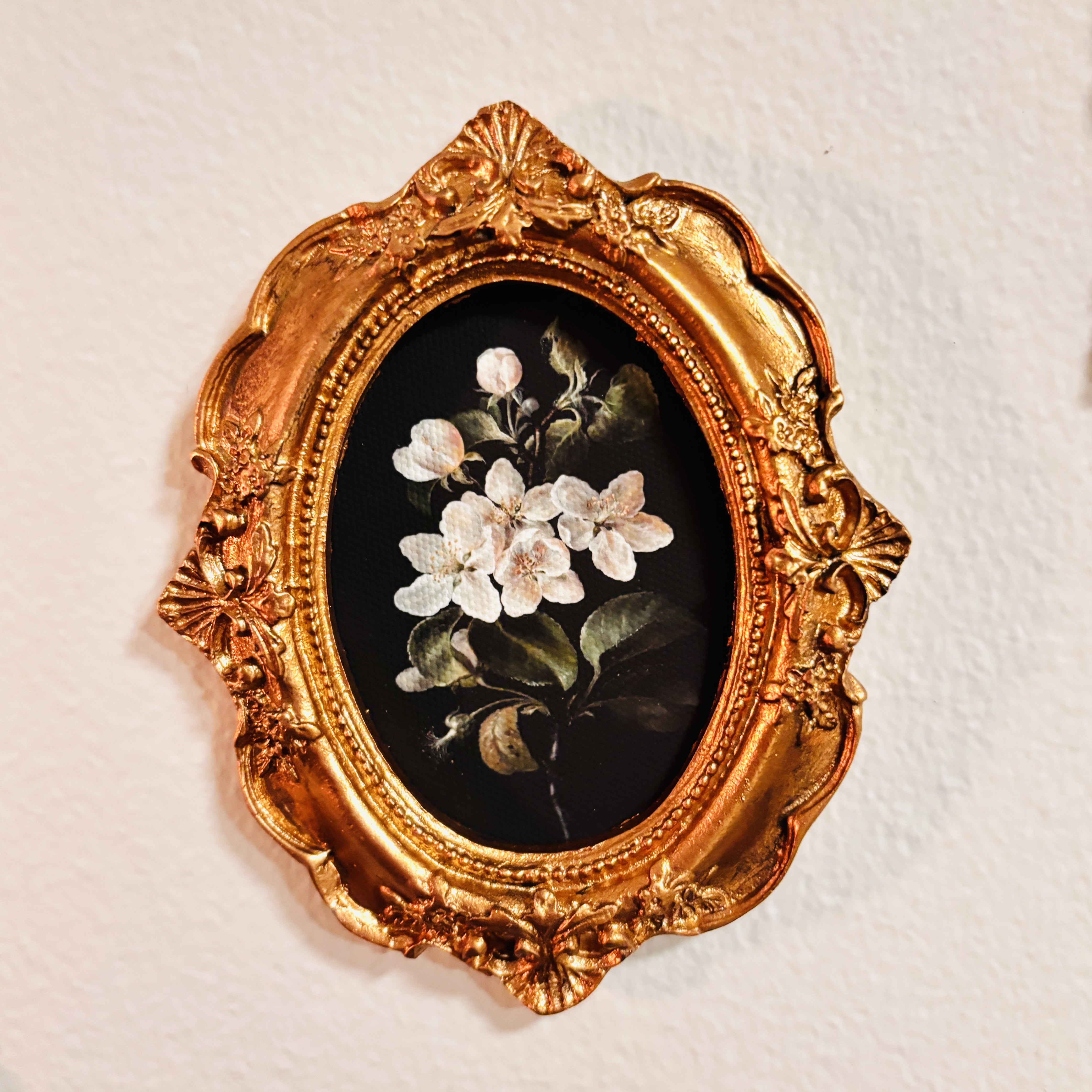 This little framed mini white flower art bring me so much joy – and I hope they’ll do the same for you. Each vintage style miniature art print from my mini art collection is carefully curated. This vintage art print of white flowers is stunning. I love styling it on a shelf, mix with other mini arts to create a fridge gallery wall, or tucking them into cozy corners that need a bit of magic. My mini art collection is also perfect for gifting – especially for someone who loves vintage charm, florals, or unique home décor.