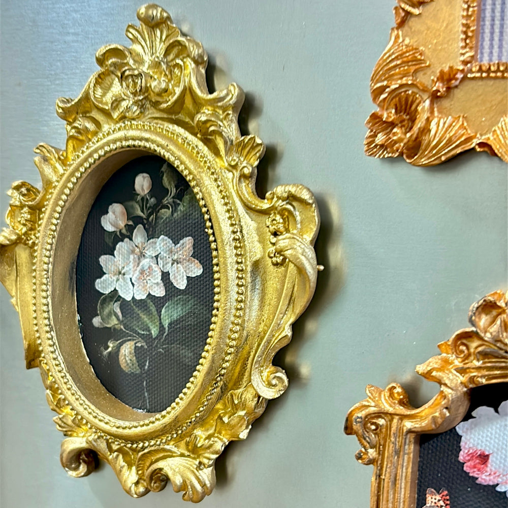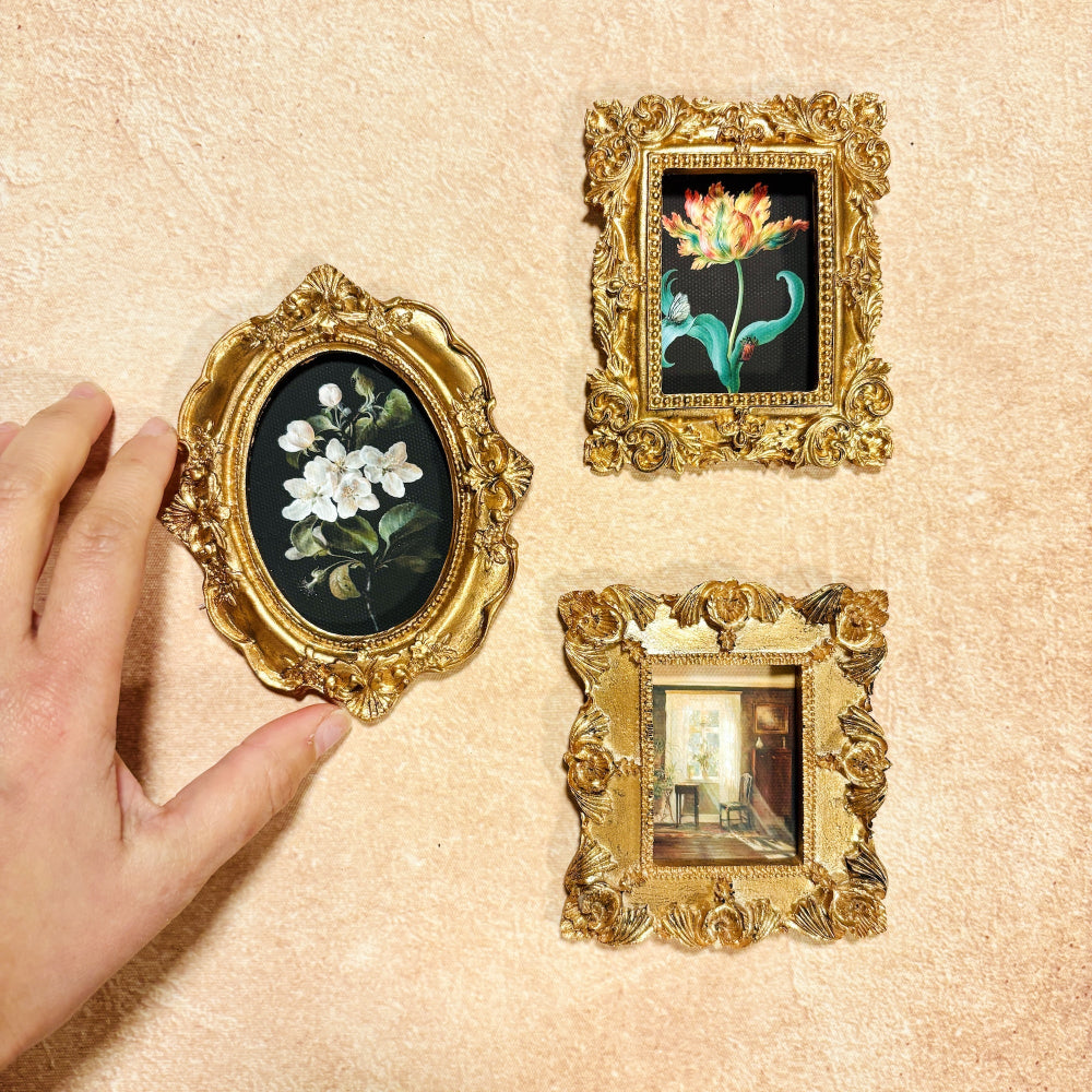 - Hand-painted frames in three different styles, ornate vintage designs for a timeless aesthetic.